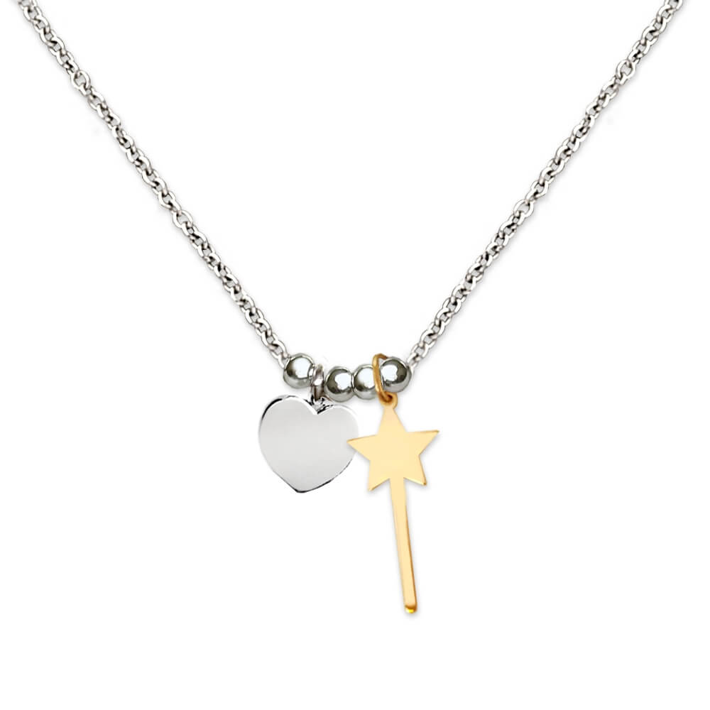 Collana in argento 925 con ciondolo bacchetta magica e cuoricino