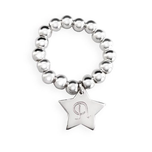 Anello con luminose sfere in argento 925 rodiato e stellina personalizzabile con iniziali.