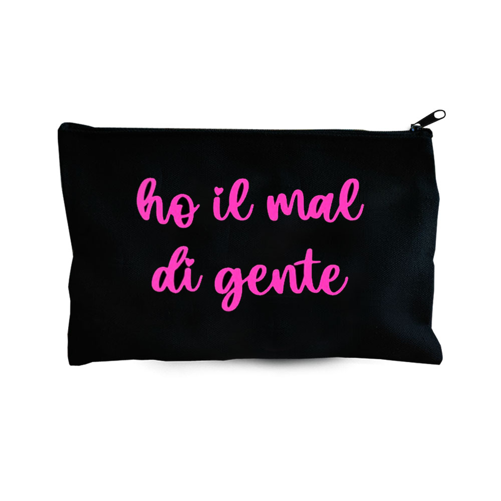 Con la scritta ironica “Ho il mal di gente”, questa pochette è l’accessorio perfetto per chi ama la tranquillità e affronta la vita (e le persone) con un pizzico di sarcasmo.