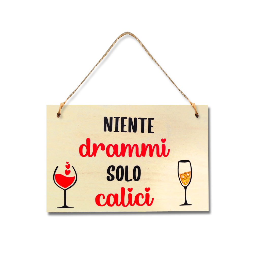 Targhetta in legno Niente drammi solo calici